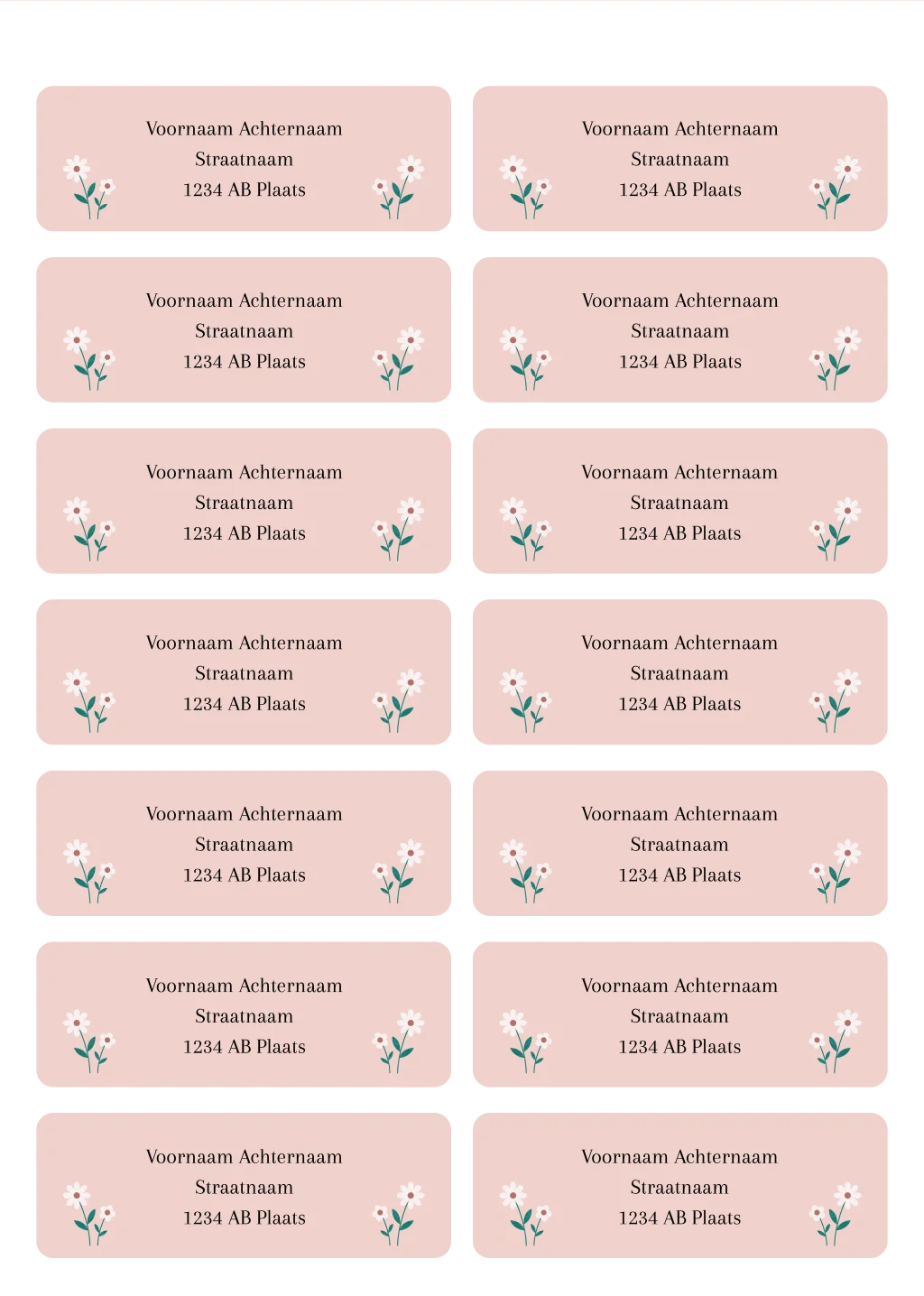 Leuke adresstickers, te personaliseren in stijl van je kaart! Elke sticker is afzonderlijk te voorzien van een eigen adres. Een vel bevat 14 stickers met het formaat van 97 x 34 mm.