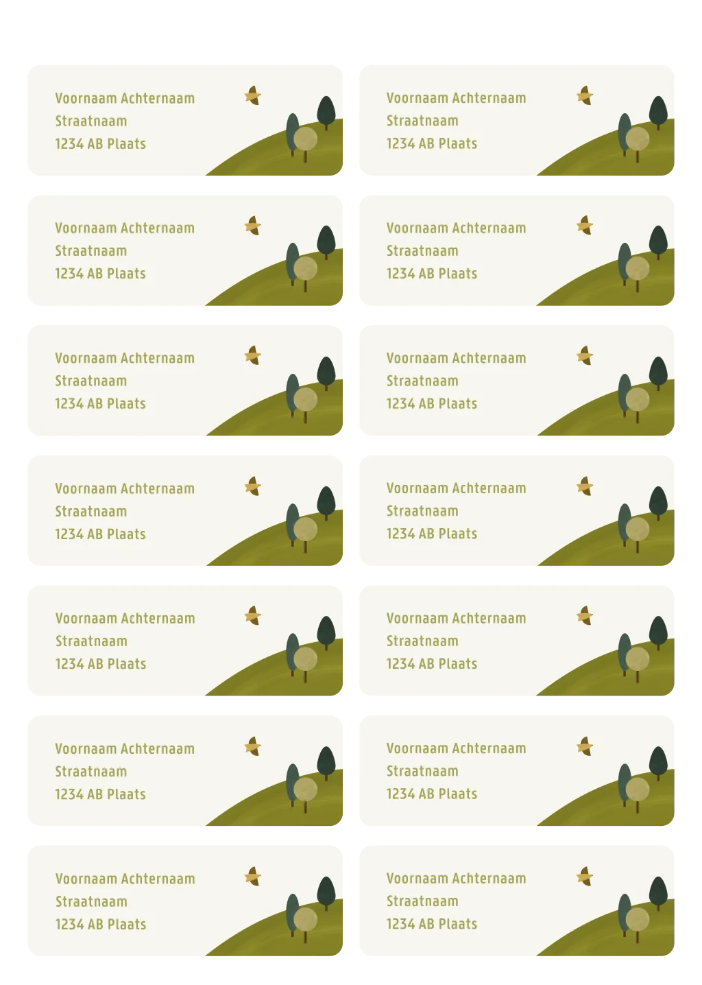 adresstickers met heuvel en vogeltje v.a 14 st