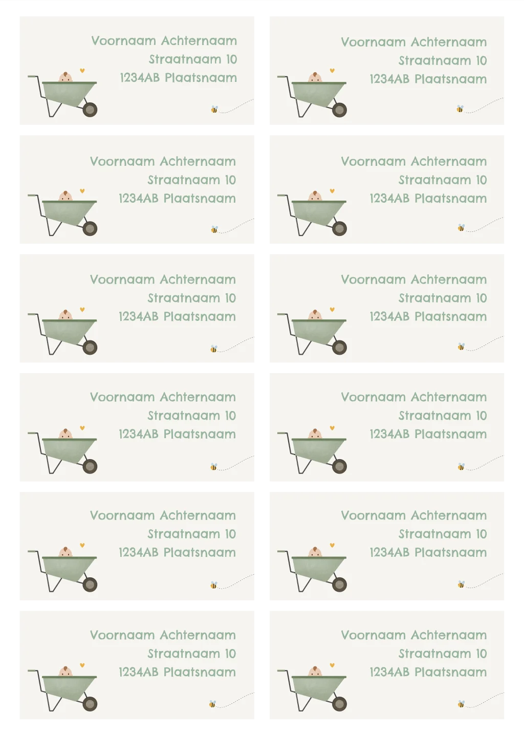 adresstickers met kruiwagen en baby
