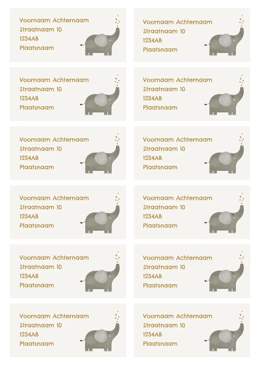adresstickers met olifantje v.a 12 stuks