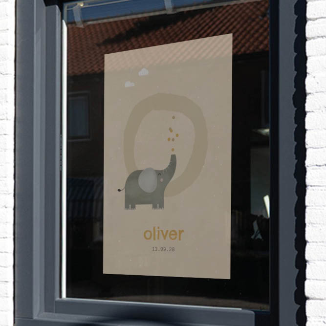 geboorte aankondigingssticker voor op het raam Oliver