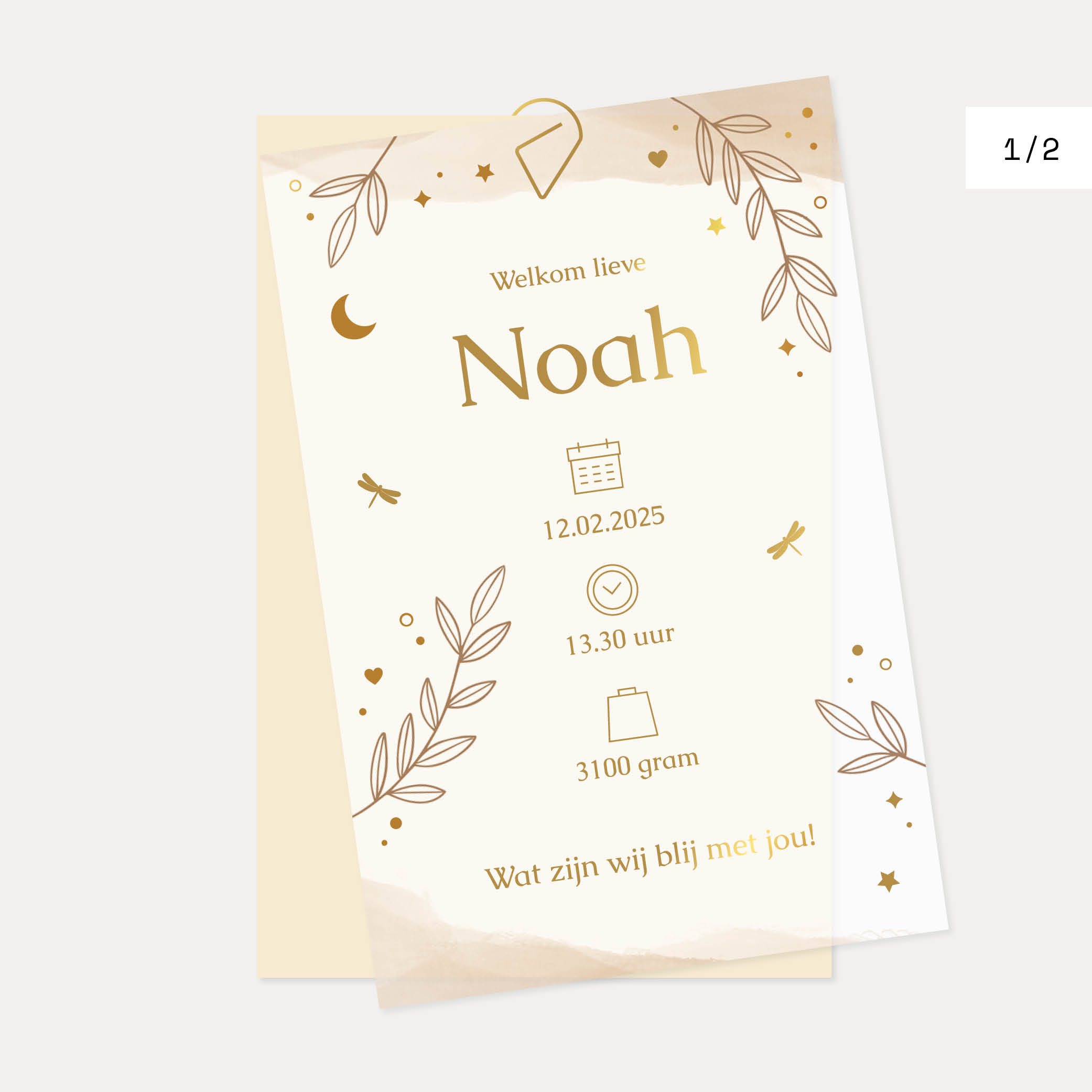 deel 1 - kalkpapier voorkant geboortekaartje botanisch Noah