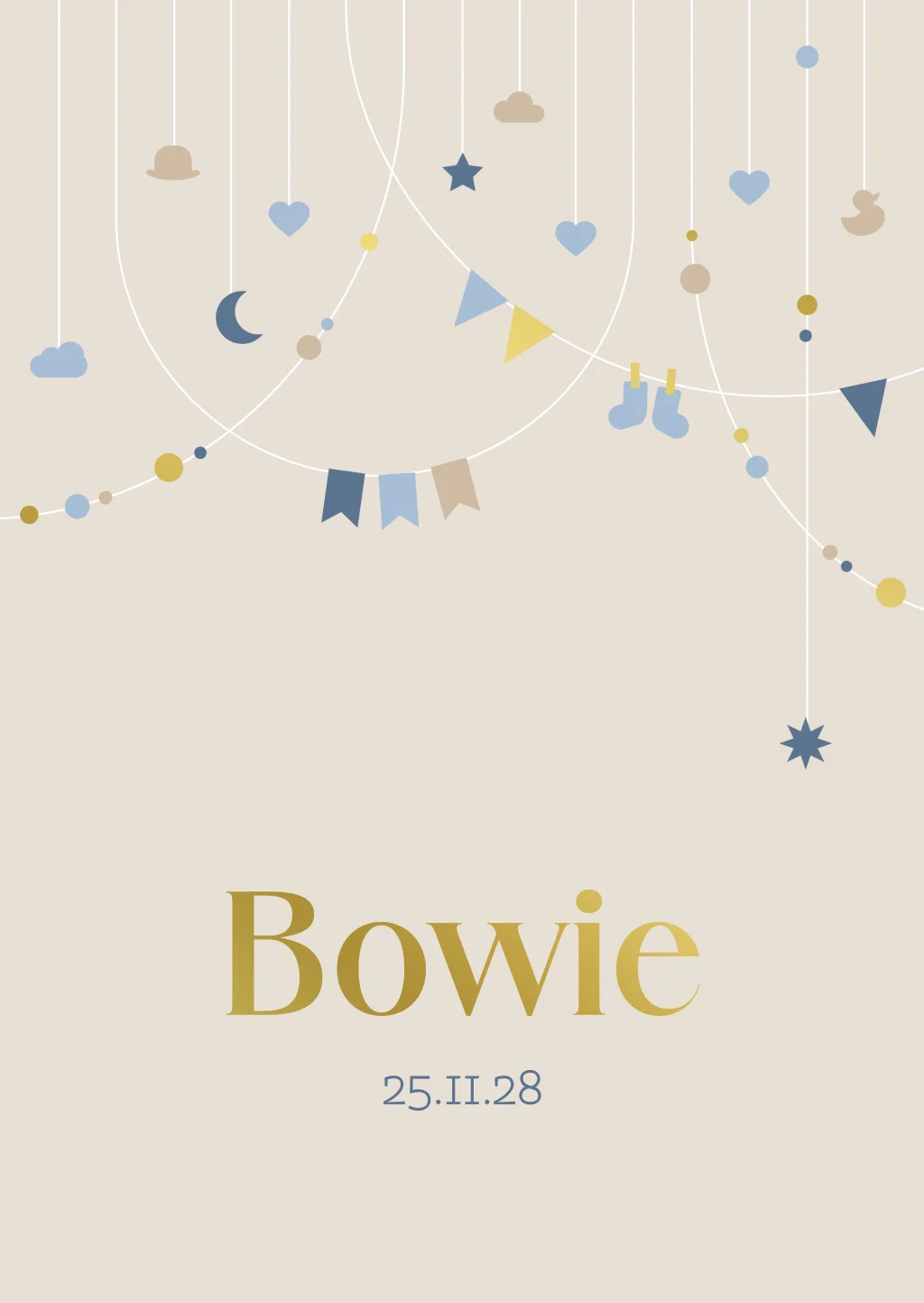 tent geboortekaartje Bowie met slingers en folie