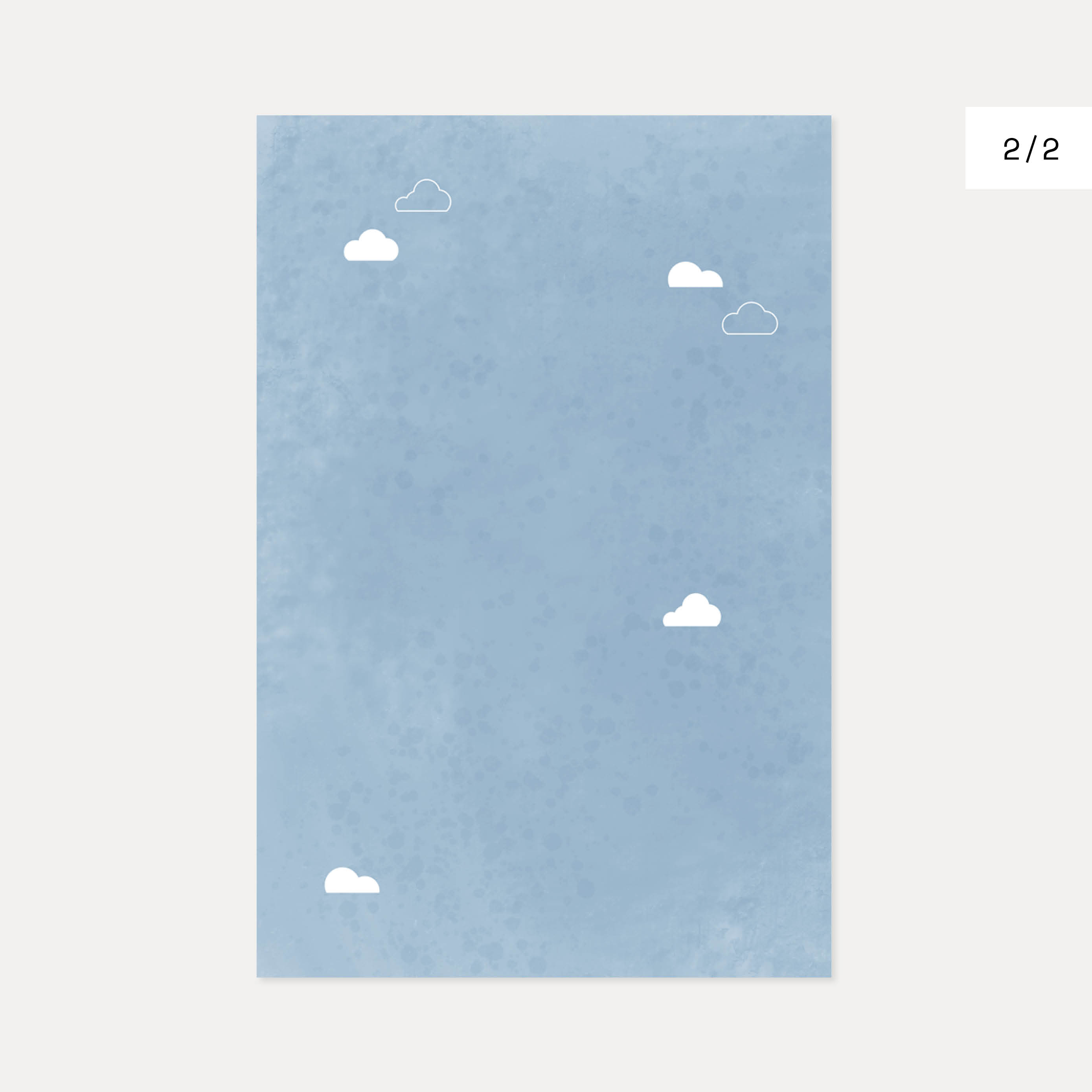 Achterkaart (deel 2/2) van het geboortekaartje met kalkpapier Tygo. Let op: zet alle tekst op de achter­zijde van deze achterkaart (swipe hiervoor naar links of klik op het rechter pijltje). Het kalk­papierkaartje wordt namelijk op de voorzijde van deze achterkaart bevestigd.
