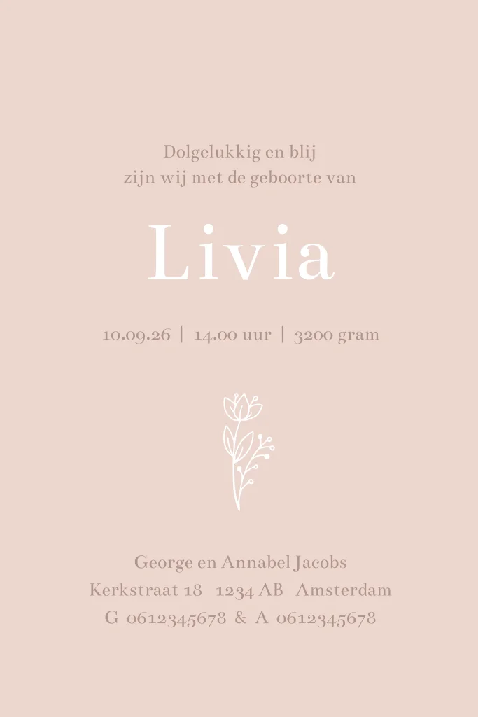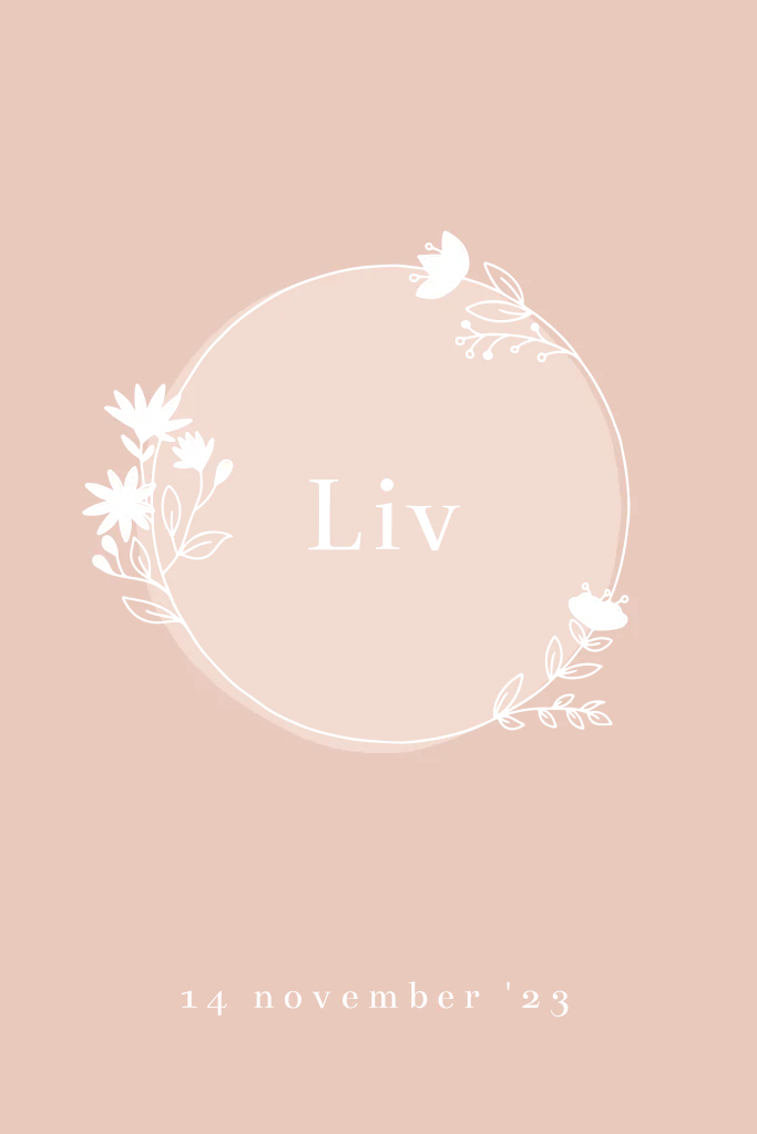 geboortekaartje Liv met bloemenkrans in goudfolie