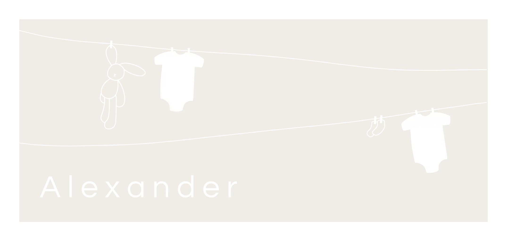 geboortekaartje Alexander met waslijn en babykeertjes in goudfolie