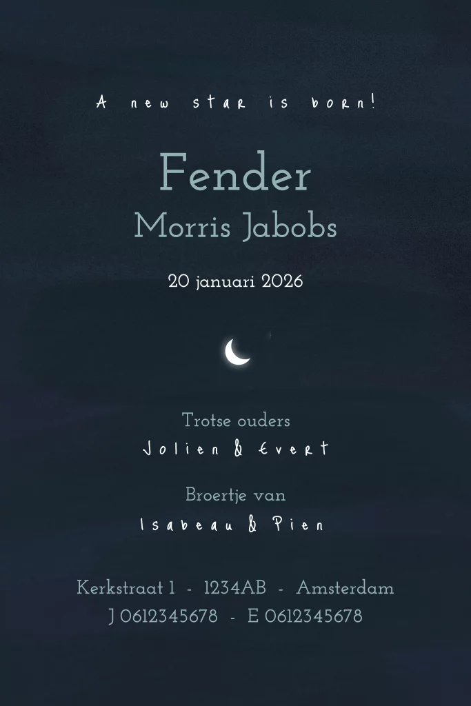 Een schattig winters geboortekaartje met beren kijkend naar sterren. Je kunt optioneel een sterrenstelsel van het sterrenbeeld van jouw kindje toevoegen, deze vind je in de afbeeldingen onder 'sterrenbeelden'. Heb je hulp nodig bij het ontwerpen of wil je dit kaartje in een ander formaat? Stuur mij een berichtje, ik help je graag!