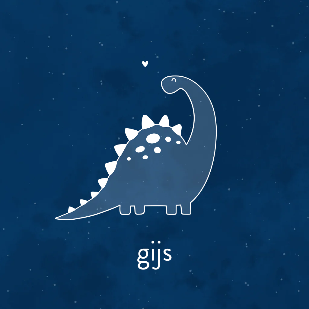 Schattig geboortekaartje Gijs met dino in roségoudfolie. Kaartje is naar eigen wens aan te passen. Wil je dit ontwerp in een ander formaat of heb je hulp nodig? Stuur een berichtje, we helpen je graag verder!