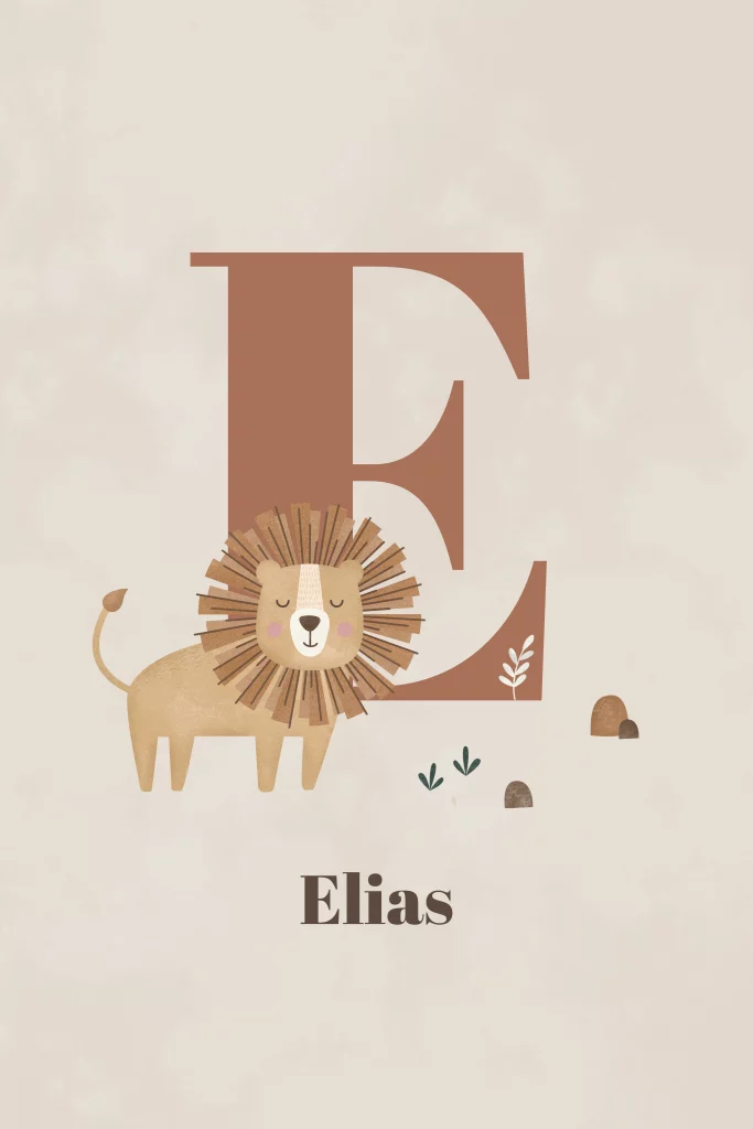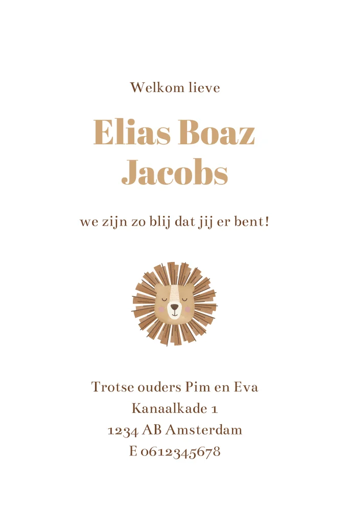 geboortekaartje jongen met leeuw en initiaal beige dubbel