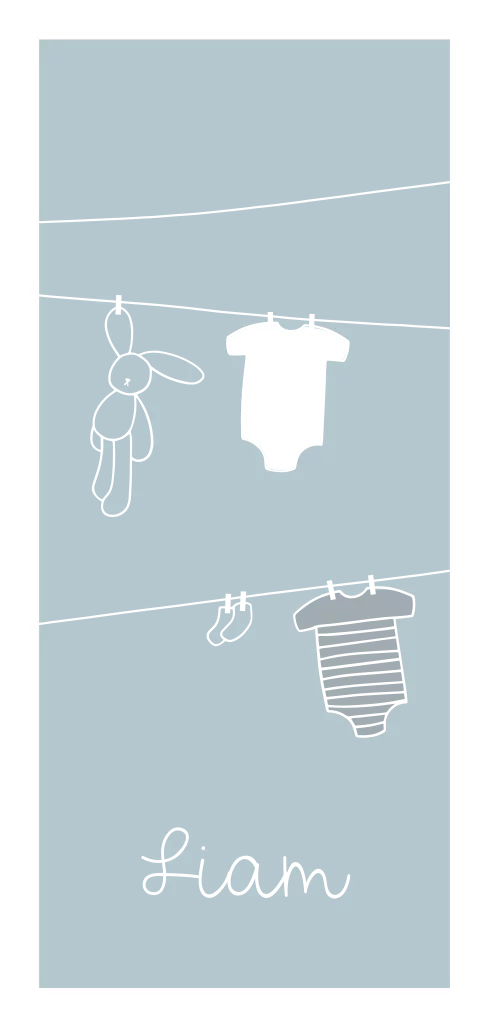 Een schattig geboortekaartje voor een jongen met waslijntje in zilverfolie. De achtergrond en foliekleur zijn naar wens aan te passen. Hulp nodig bij het ontwerpen van je kaartje? Stuur mij gerust een berichtje, ik help je graag!