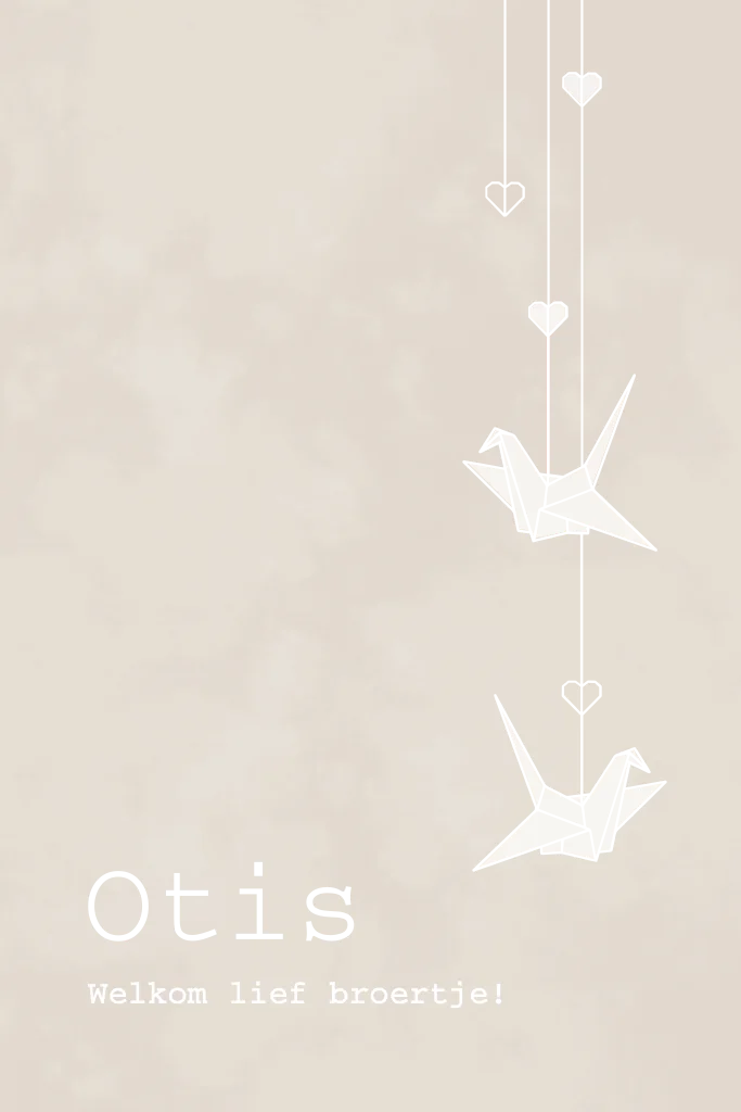 geboortekaartje Otis met origami kraanvogels in goudfolie