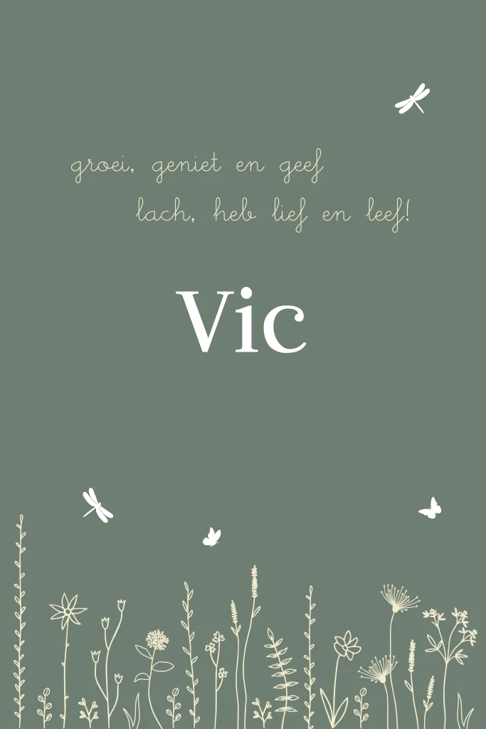 geboortekaartje Vic met veldbloemen en roségoudfolie
