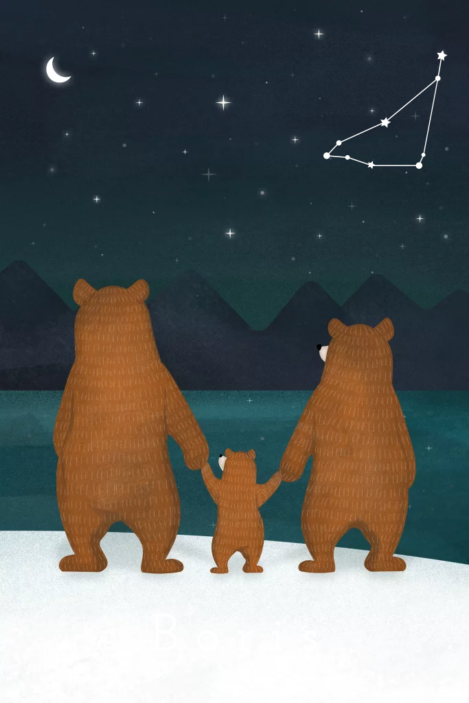Een schattig winters geboortekaartje met beren kijkend naar sterren. Je kunt optioneel een sterrenstelsel van het sterrenbeeld van jouw kindje toevoegen, deze vind je in de afbeeldingen onder 'sterrenbeelden'. Heb je hulp nodig bij het ontwerpen of wil je dit kaartje in een ander formaat? Stuur mij een berichtje, ik help je graag!