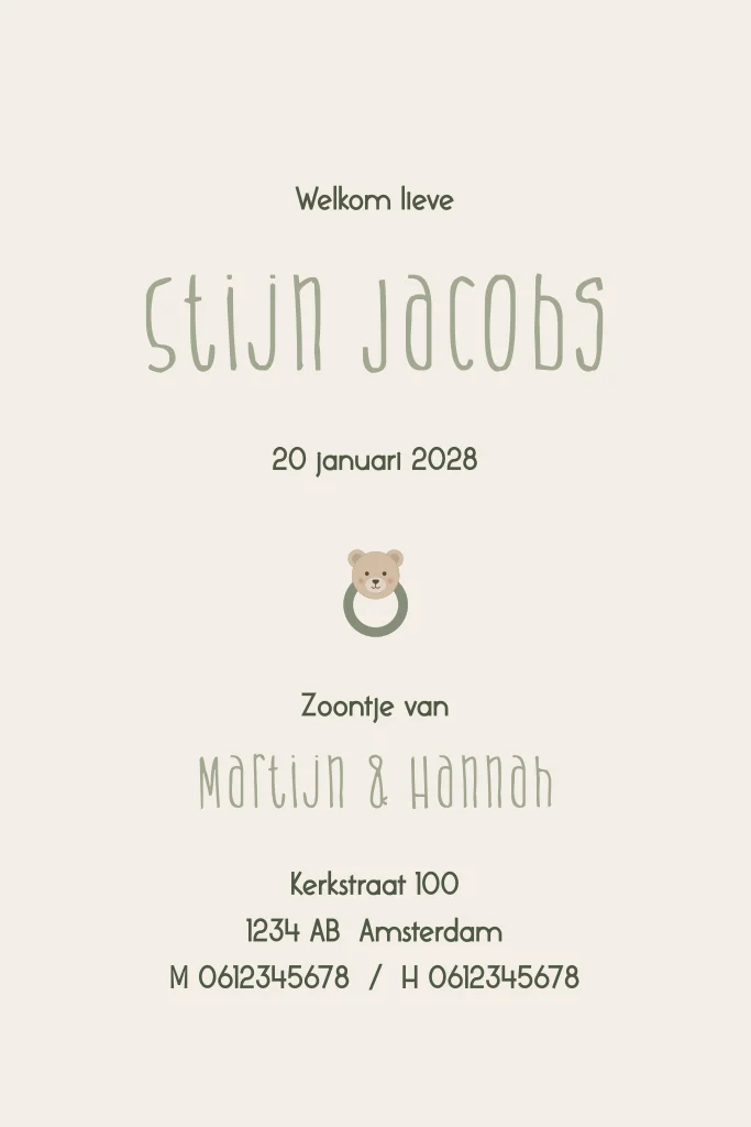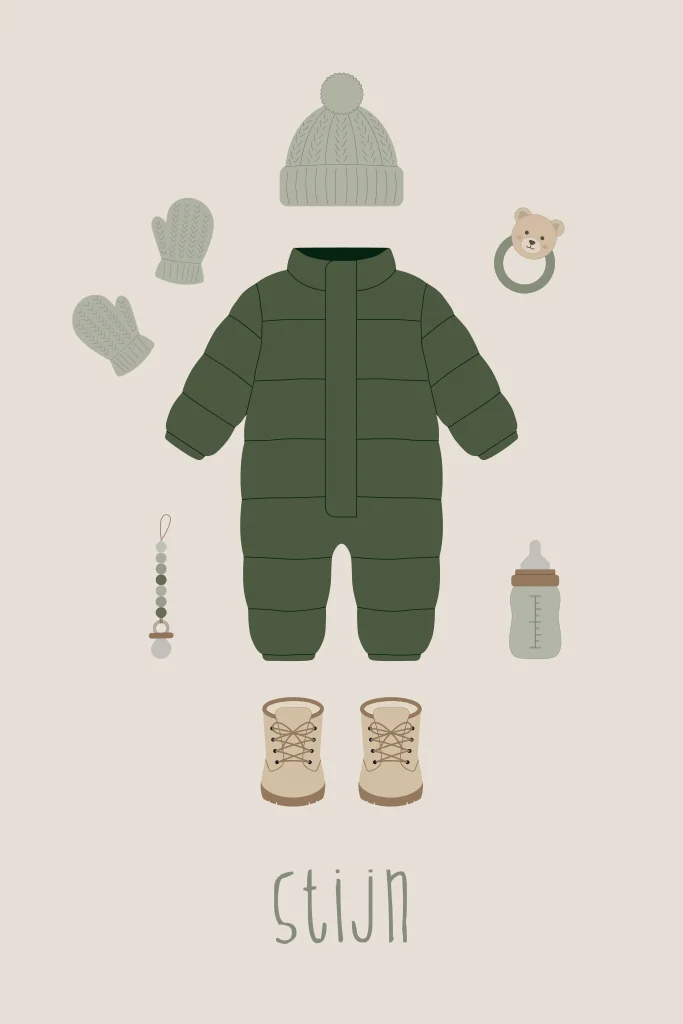 Geboortekaartje Stijn met winterse babykleding. Hulp nodig bij je ontwerp of wil je een ander formaat kaart? Stuur een berichtje, we helpen je graag verder!
