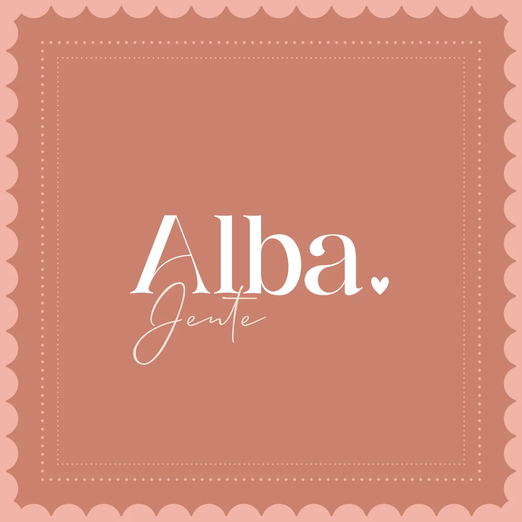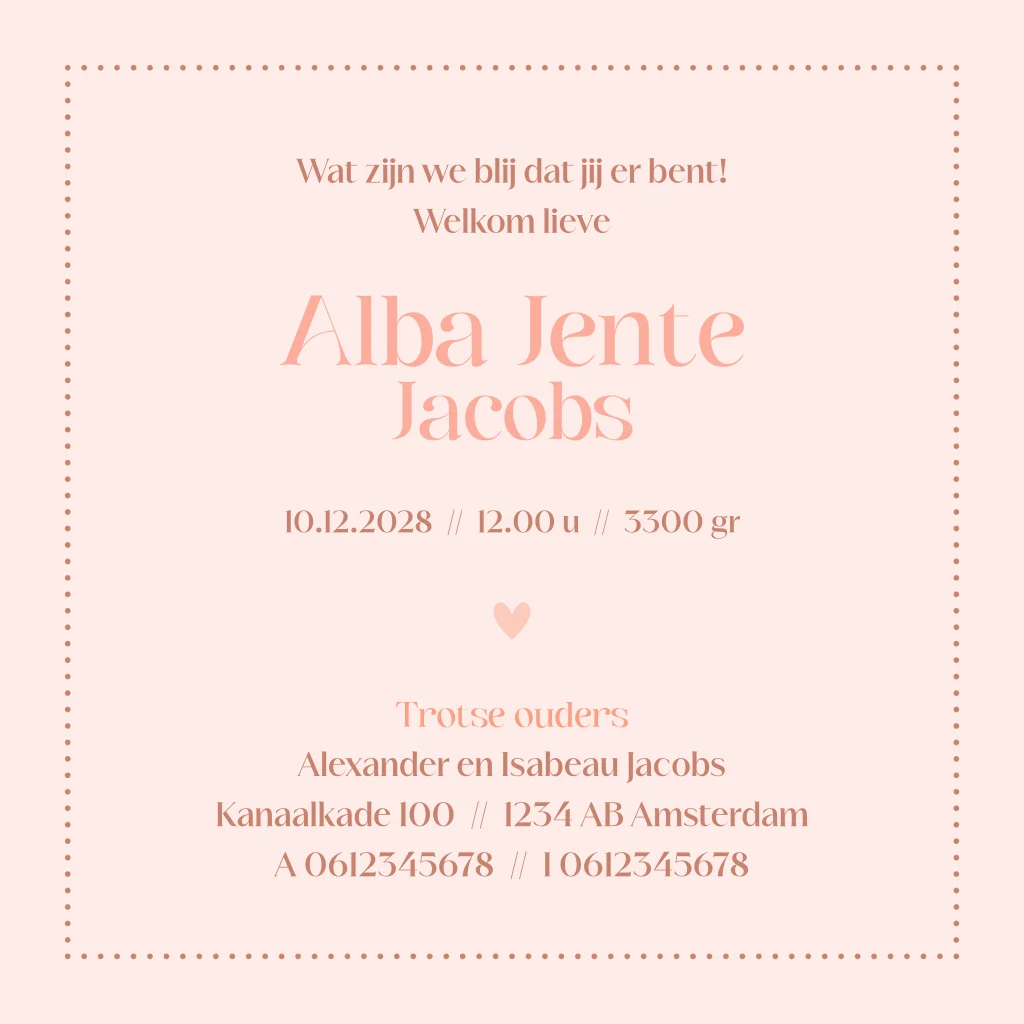 geboortekaartje Alba met speelse rand en naam in foliedruk