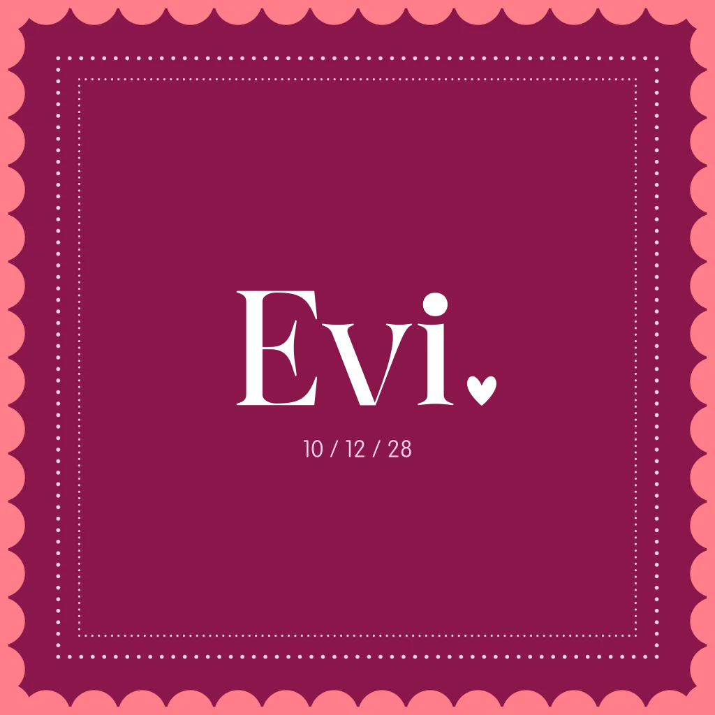 geboortekaartje Evi met speelse rand en naam in foliedruk