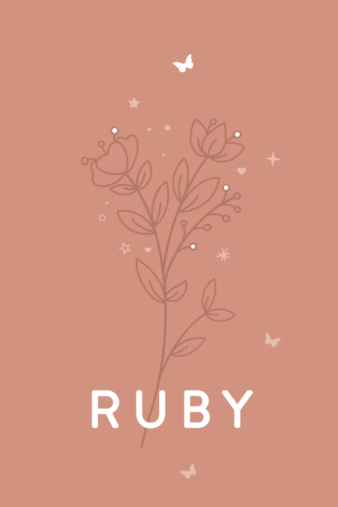 Een schattig geboortekaartje voor een meisje met een bloem en sterretjes. Naam en elementjes staan in goudfolie. Kleuren zijn naar wens aan te passen!