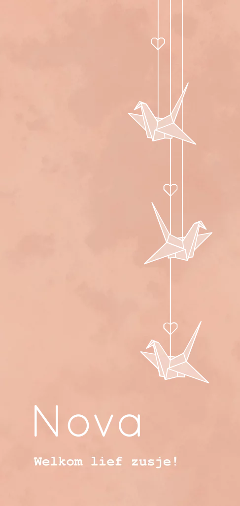 Een geboortekaartje met origami kraanvogels in goudfolie. De achtergrond, het lettertype en de kleuren zijn naar wens aan te passen. Hulp nodig bij het ontwerpen van je kaartje? Stuur mij een berichtje, ik help je graag!