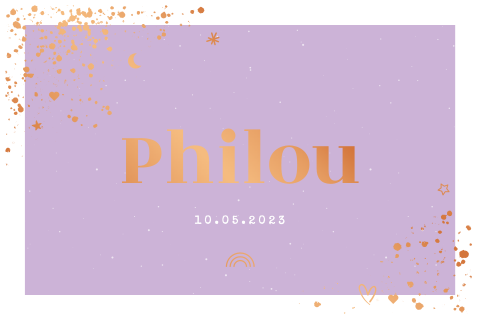 geboortekaartje Kate minimalistisch met hartjes in rosegoudfolie
