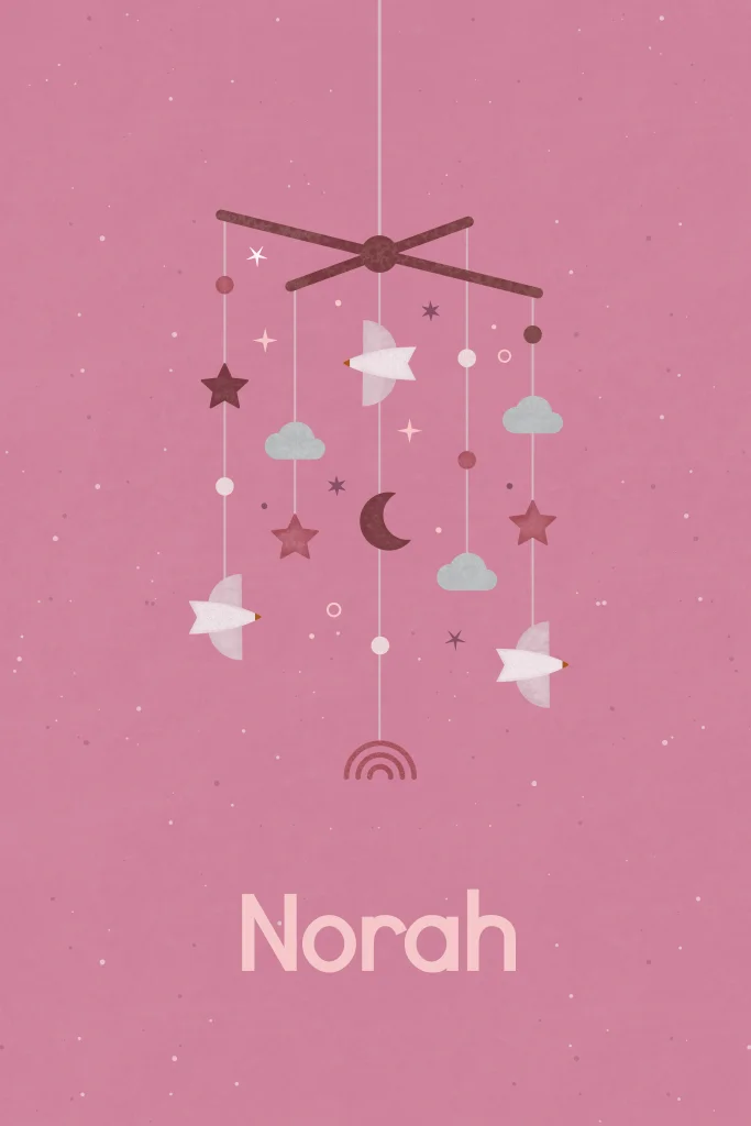 Een schattig geboortekaartje met vogeltjes babymobiel. Bewerk de kaart naar eigen wens. Hulp nodig bij je ontwerp wil je de kaart in een ander formaat? Stuur een berichtje, we helpen je graag verder!