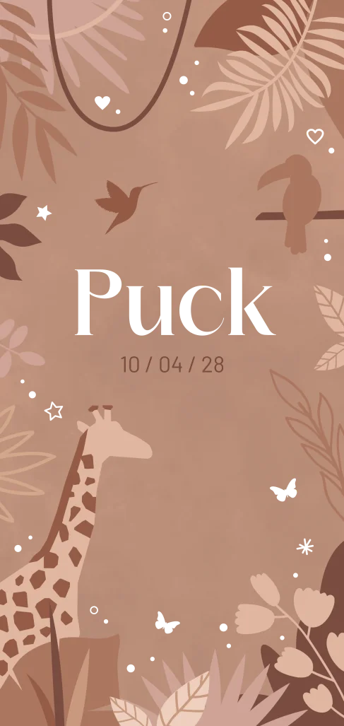 Een jungle geboortekaartje in terra tinten. Heb je hulp nodig bij het ontwerpen van je kaart of wil je 'm in een ander formaat? Stuur een berichtje, we helpen je graag!