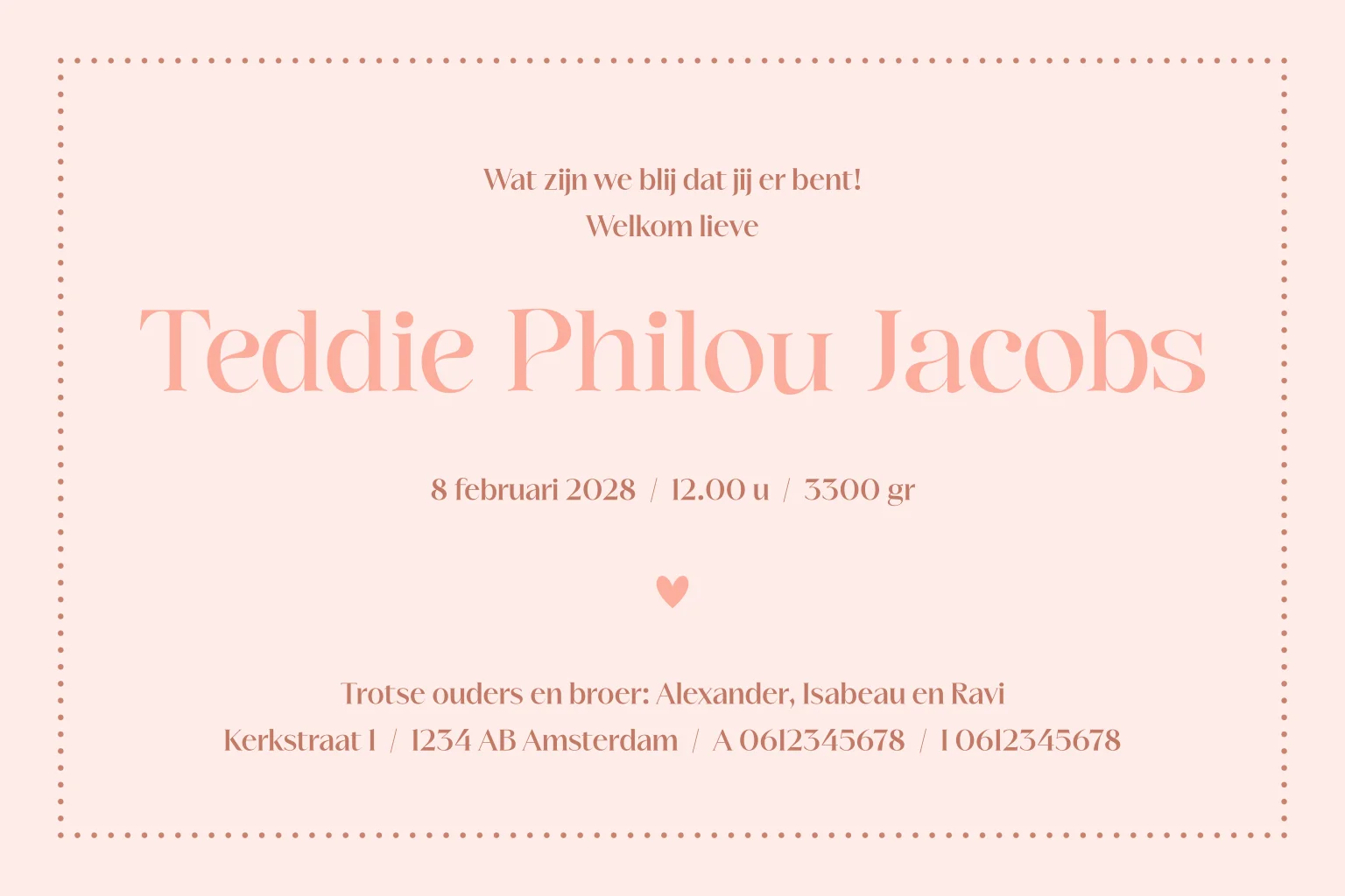 geboortekaartje Teddie met speelse rand en naam in foliedruk