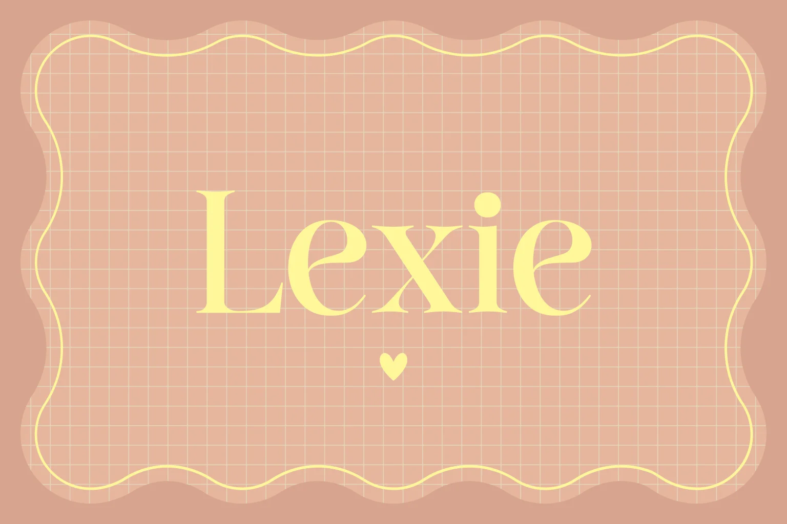 Geboortekaartje Lexie met ruiten achtergrond en speels kader. Heb je hulp nodig bij het ontwerpen of wil je de kaart in een ander formaat? Stuur een berichtje, we helpen je graag verder!
