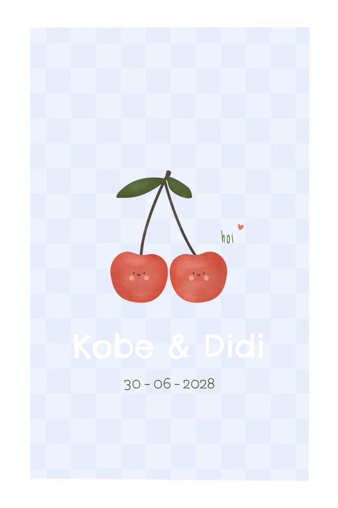 geboortekaartje tweeling Kobe en Didi met kersjes