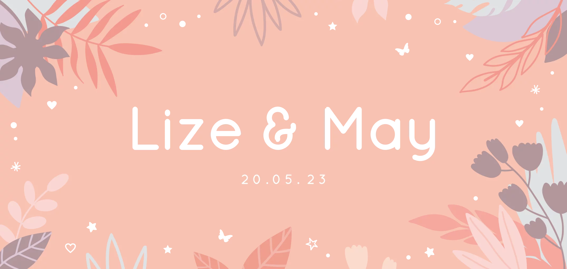 Een schattig geboortekaartje voor een tweeling met bloemen op een roze achtergrond. Naam en elementjes in goudfolie. Foliekleur is naar wens aan te passen.