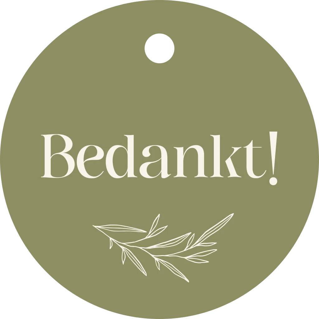 Ronde labels voor bedankje bruiloft met perforatie. Te bestellen per 16 stuks. De labels hebben een diameter van 40 mm.