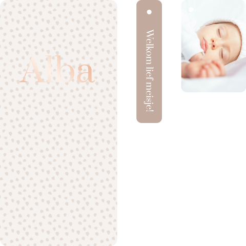 label geboortekaartje Alba met stippenpatroon en roségoudfolie