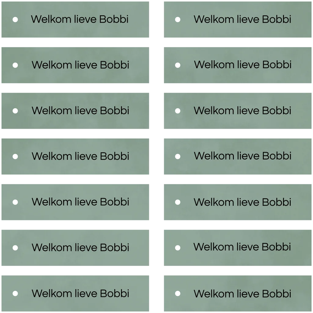 Labeltjes die je zelf kunt bewerken. Voeg folie toe of kies voor een andere achtergrond. De labels zijn 10 x 2,4 cm.