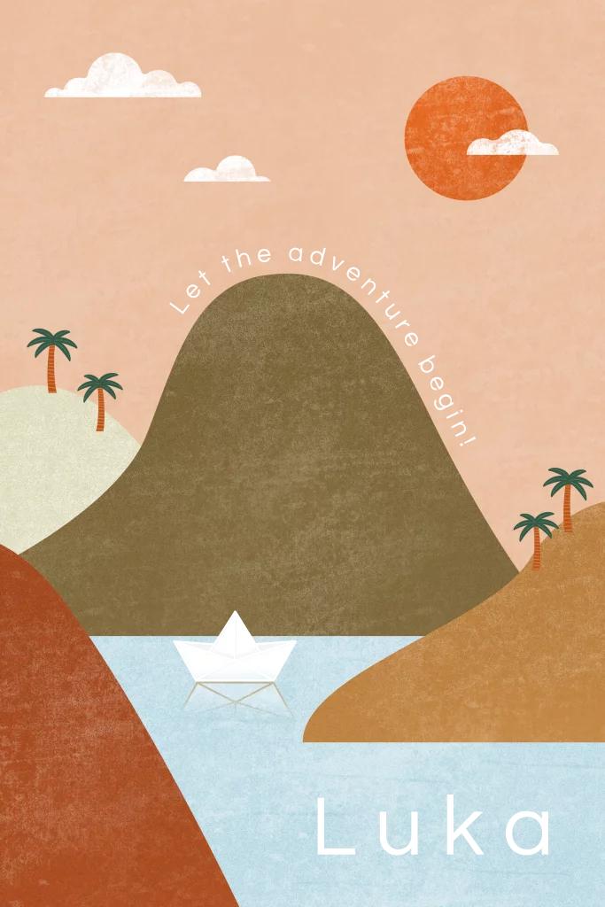 poster 20x30 cm Luka met bergen bootje en goudfolie