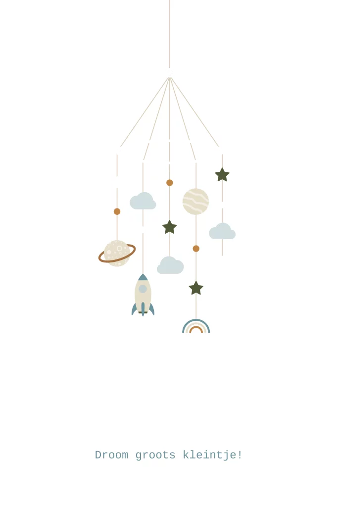 Poster 20x30 cm Luca met babymobiel en zilverfolie