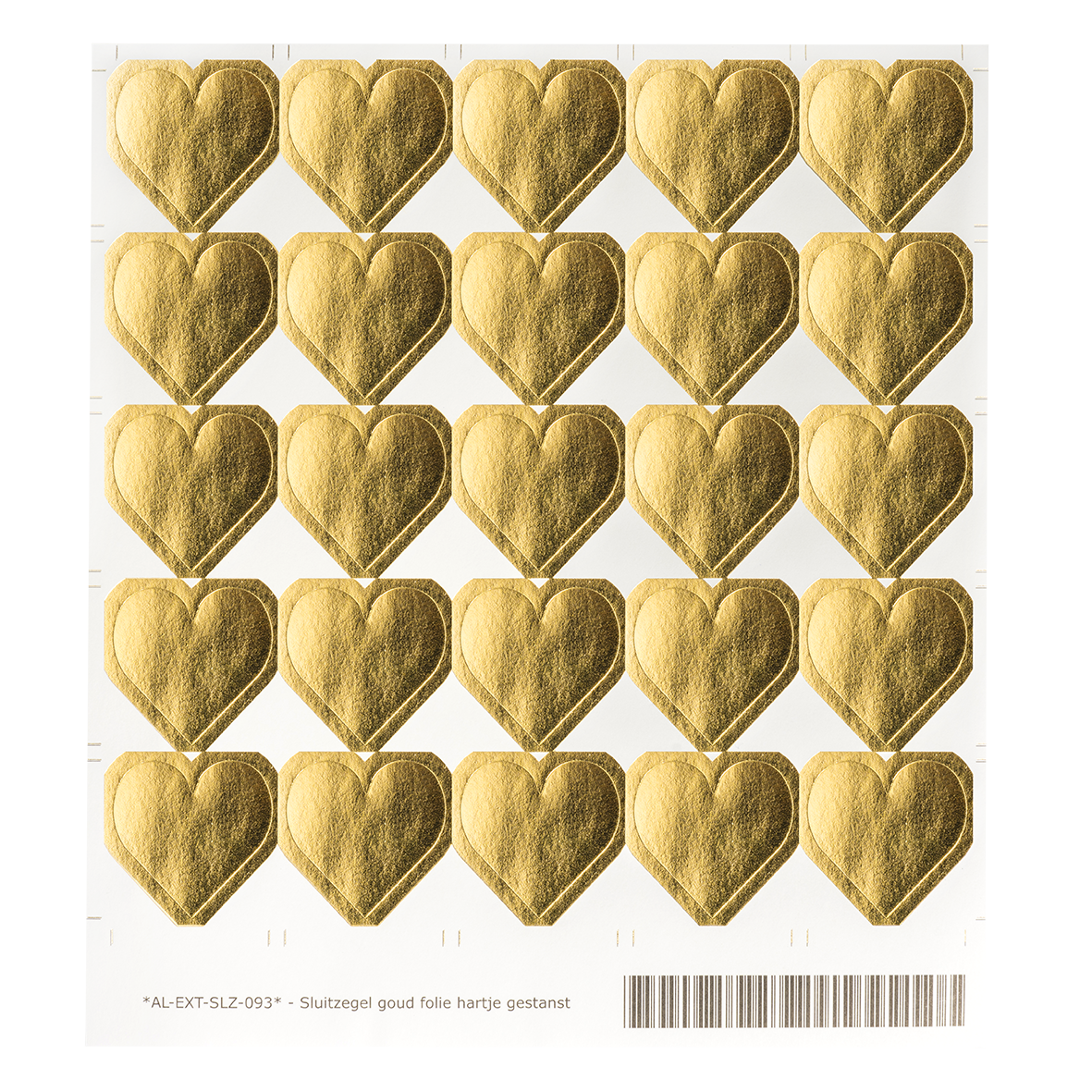 Sluitzegels in de vorm van een gouden hart. Het hartje maakt deze sluitzegel helemaal af.