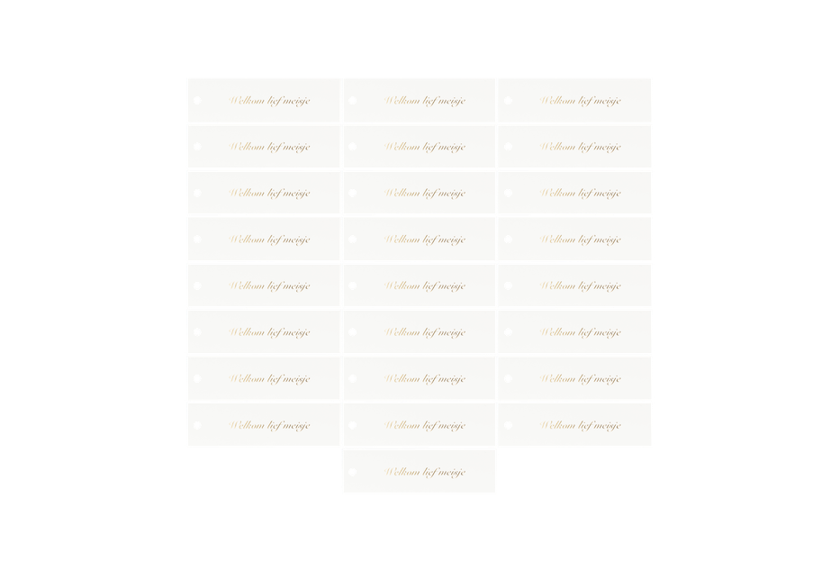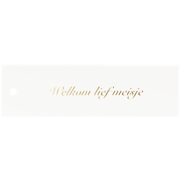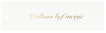Hip wit labeltje met in goudfolie de lieve tekst Welkom lief meisje