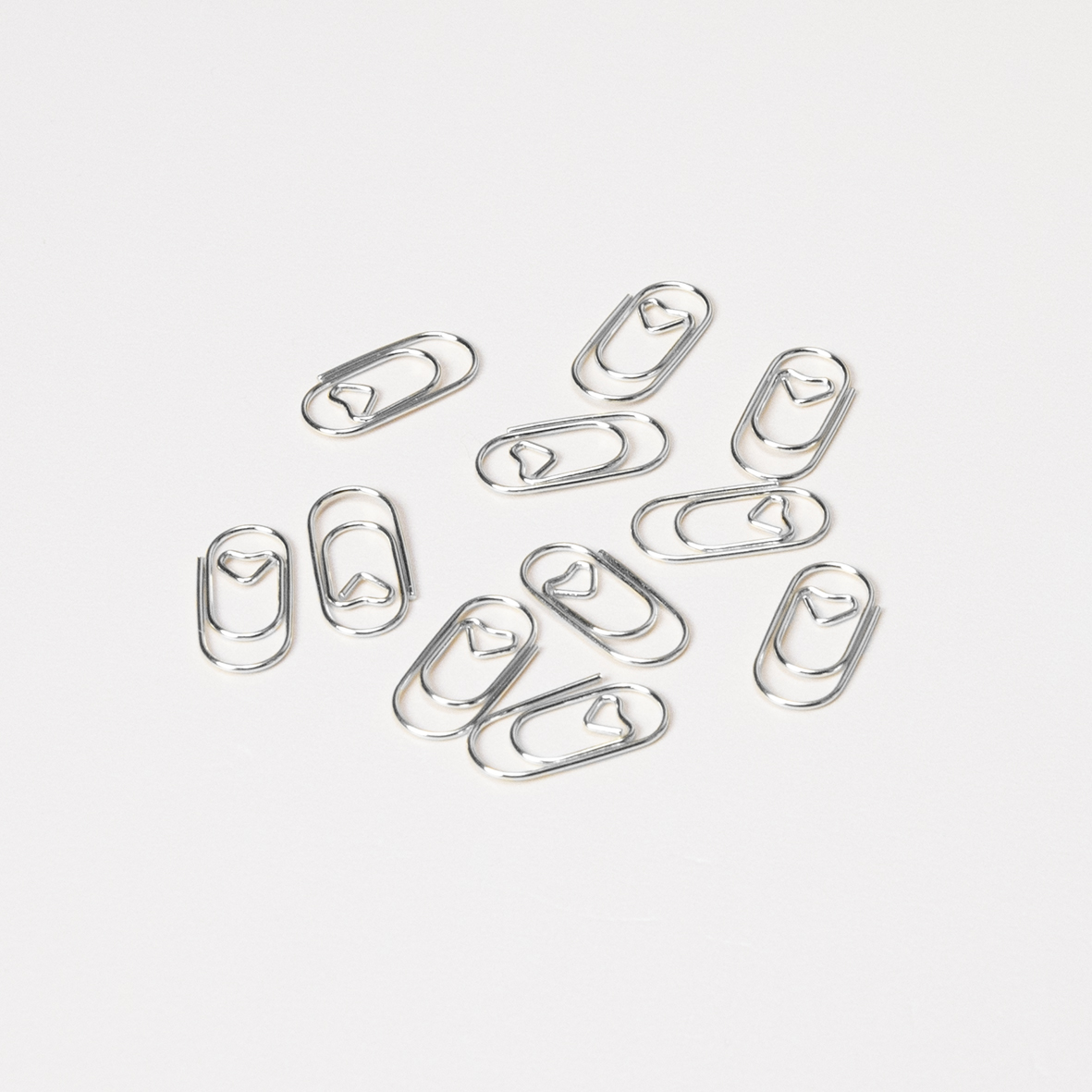 Zilveren mini paperclips met hartje (25 stuks). Formaat: 0,9 cm (breedte) x 2 cm (lengte).