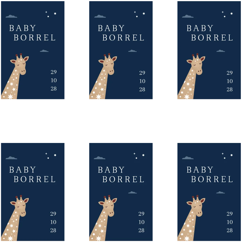 kraamborrelkaartjes met sterren giraf 55x85 mm