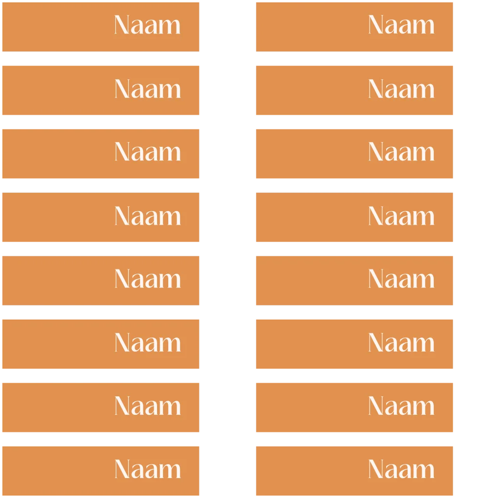 Creëer een prachtige tafelsetting door je menukaart en naamlabels / kaartjes in kleur op elkaar af te stemmen. Deze labels hebben een formaat van 83x20 cm en zijn te bewerken naar eigen wens. Heb je hier hulp bij nodig? Stuur een berichtje, we helpen je graag verder!