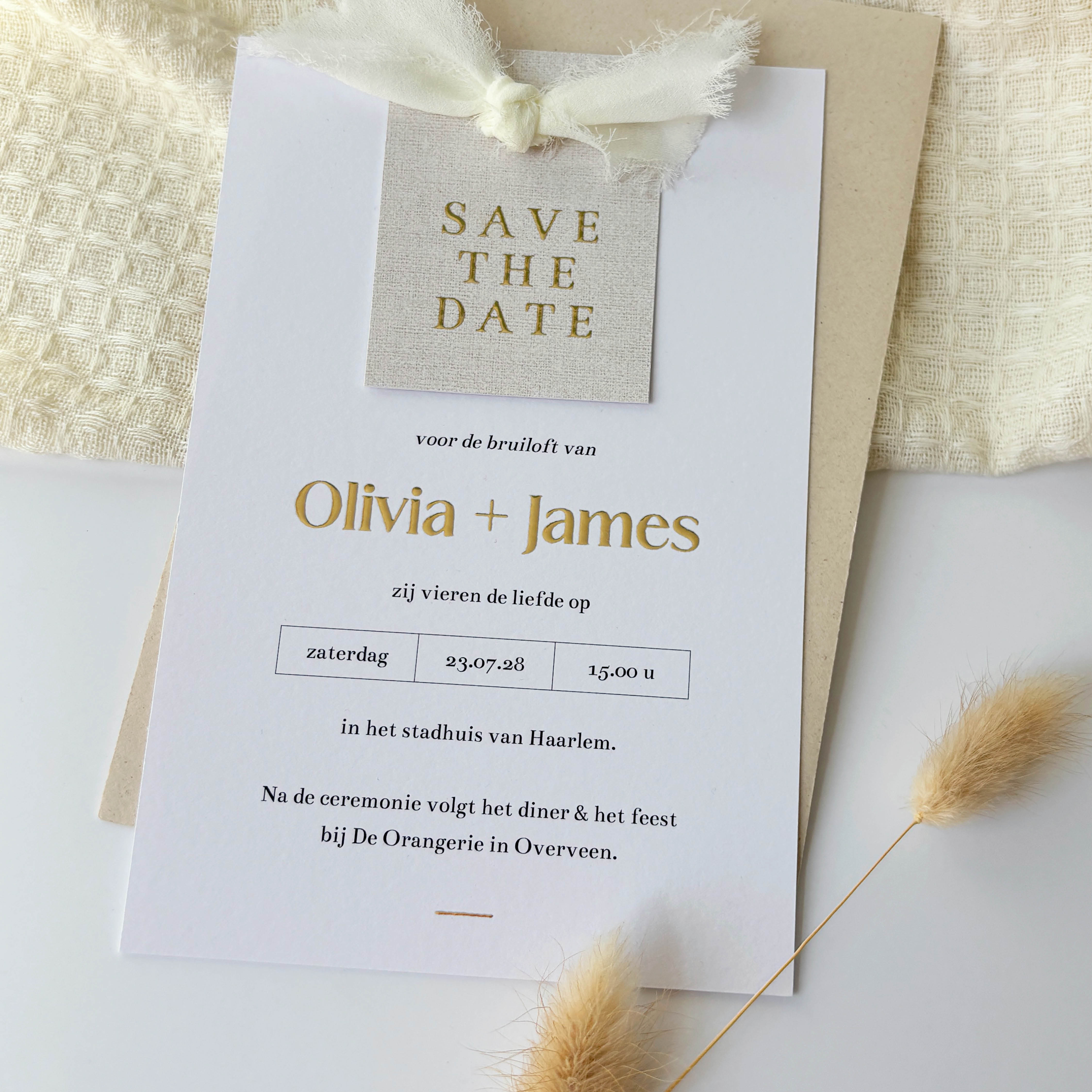 trouwkaart met label en goudfolie