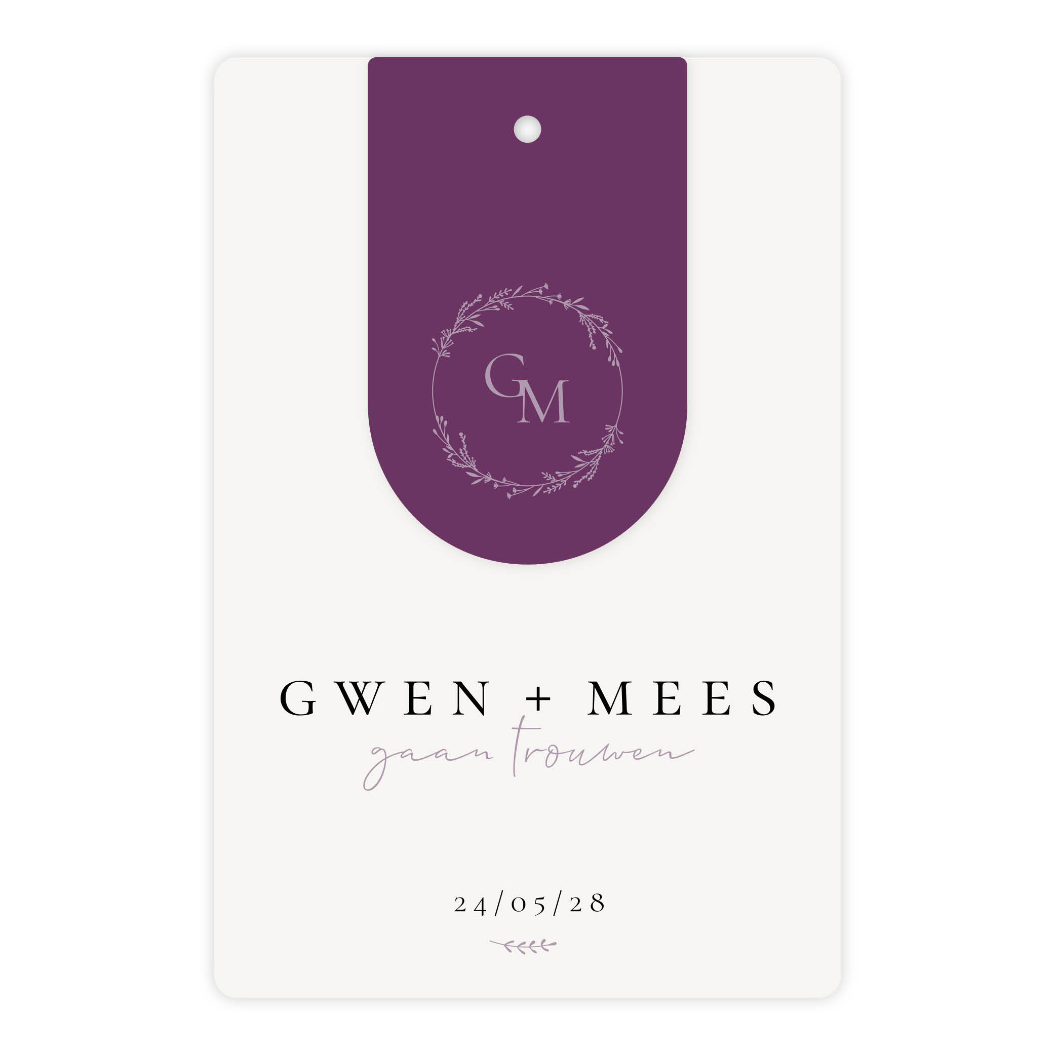 trouwkaart met label en trouwlogo met initialen