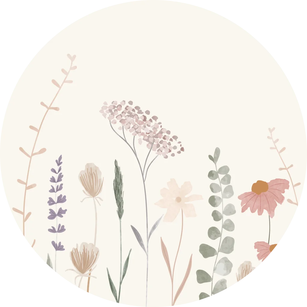 Sluitzegel met veldbloemen. Bewerk de sluitzegel naar eigen wens. Het formaat van deze sticker is Ø 35 mm en ze zijn te bestellen per 25 stuks. Heb je zelf een idee voor een sluitzegel? Stuur een berichtje, dan bekijken we wat we voor je kunnen betekenen.