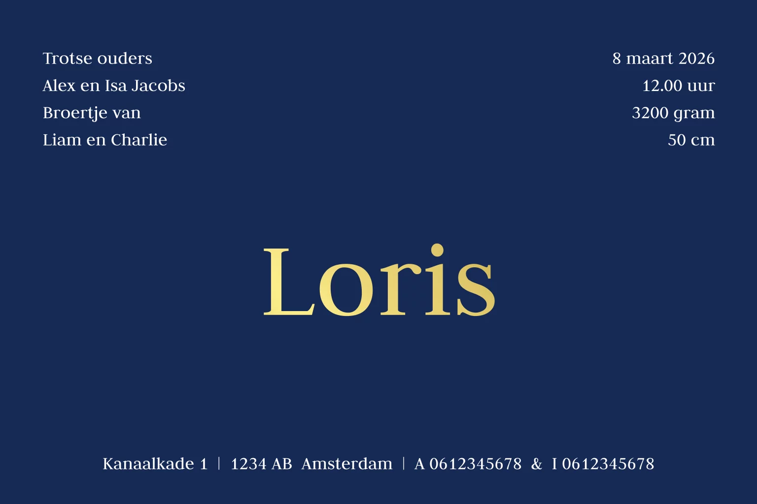 klassiek geboortekaartje Loris met doorkijkje in wolkje