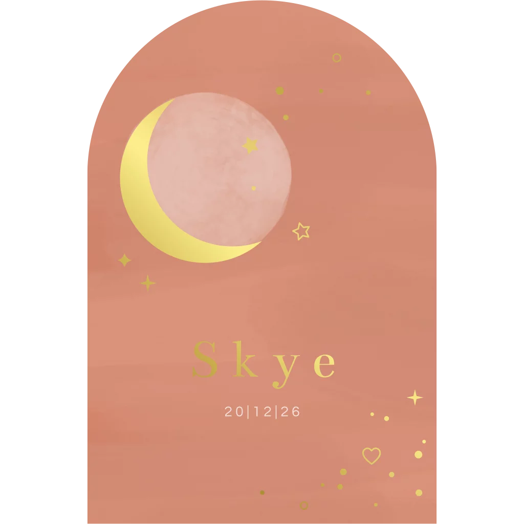 geboortekaartje Skye in boogvorm met sterren in goudfolie
