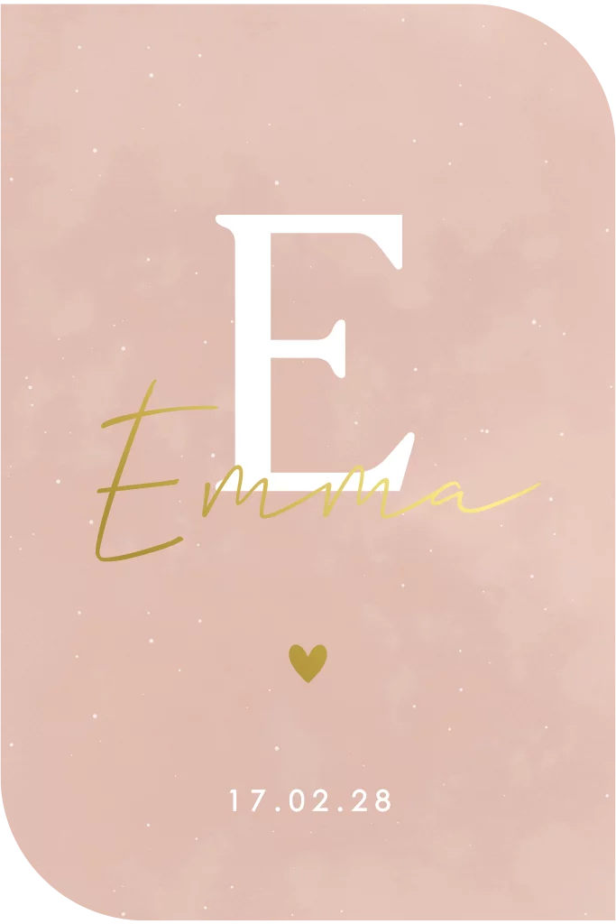 geboortekaartje Emma in bijzondere vorm met initiaal en goudfolie