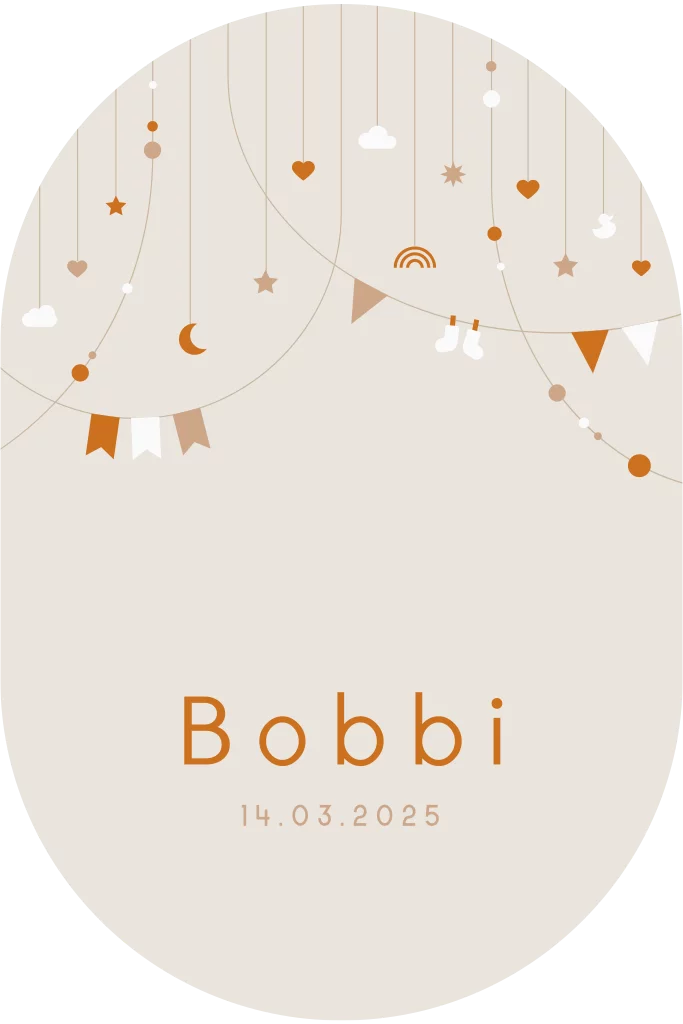 geboortekaartje Bobbi ovaal met slingers