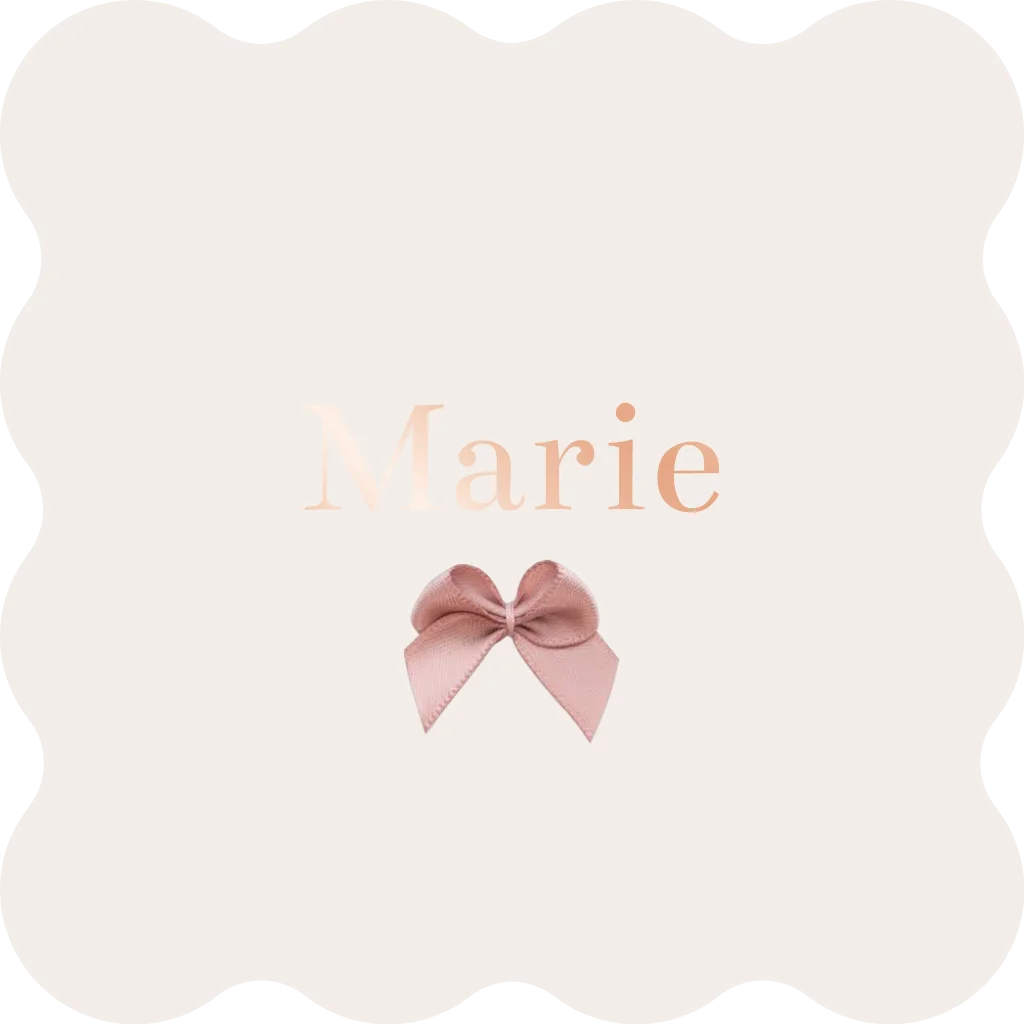 Geboortekaartje Marie uitgesneden in bijzondere vorm. Let op: de strikjes dien je er zelf bij te bestellen. Je kunt de kaart aanpassen naar eigen wens. Hulp nodig bij het ontwerpen of heb je een vraag? Stuur een berichtje, we helpen je graag verder!