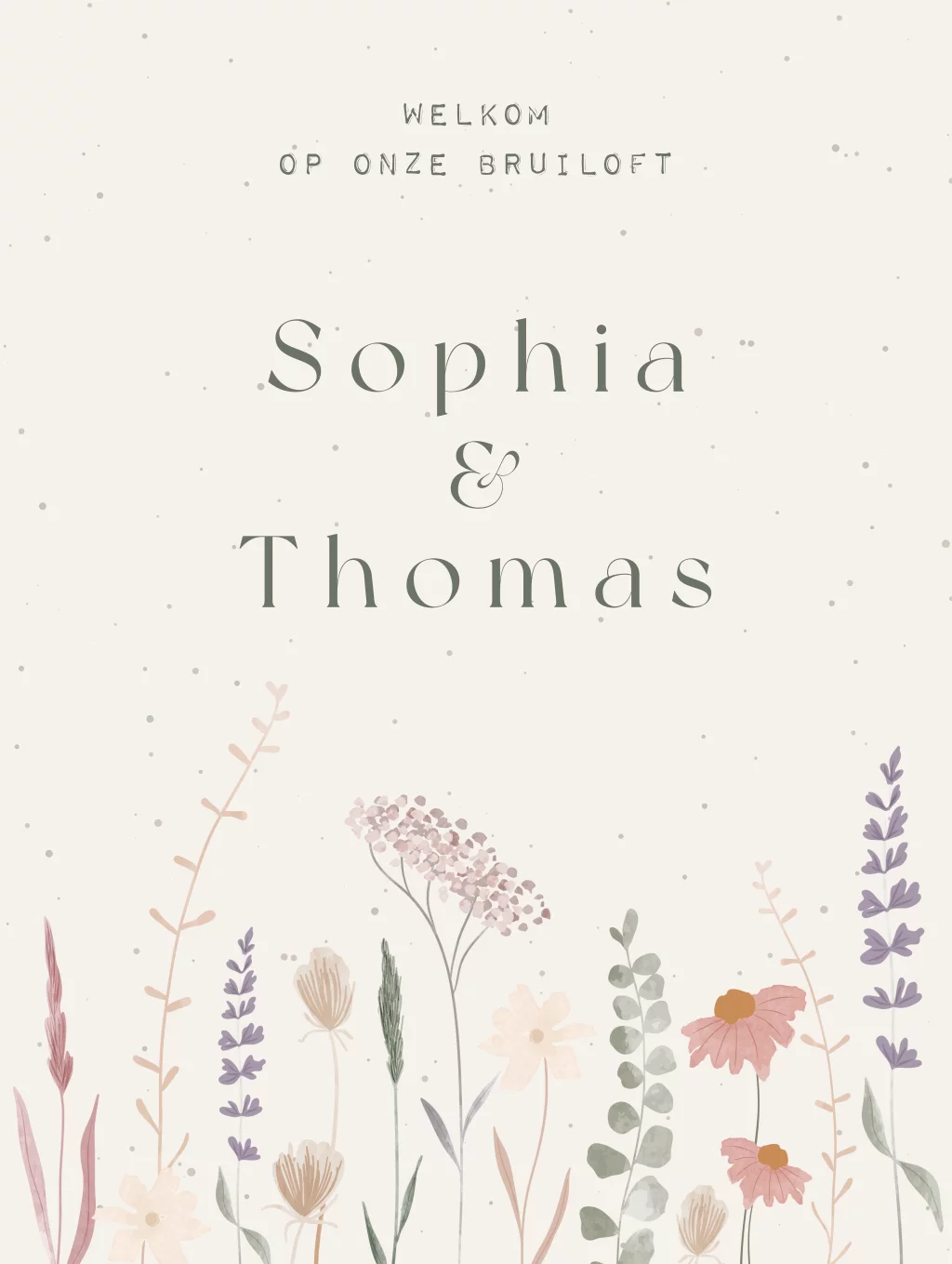 Ontwerp een mooi bord voor je bruiloft om je gasten welkom te heten! Dit is een weerbestendig welkomsbord in het formaat 73x55 cm gemaakt op het materiaal forex van 5 mm dik. Foliedruk is niet mogelijk op het bord. Bevestig het bruiloft bord op een houten paal naar keuze (of bijv. Een schildersezel). Let op: bevestigingsmateriaal wordt niet meegeleverd!