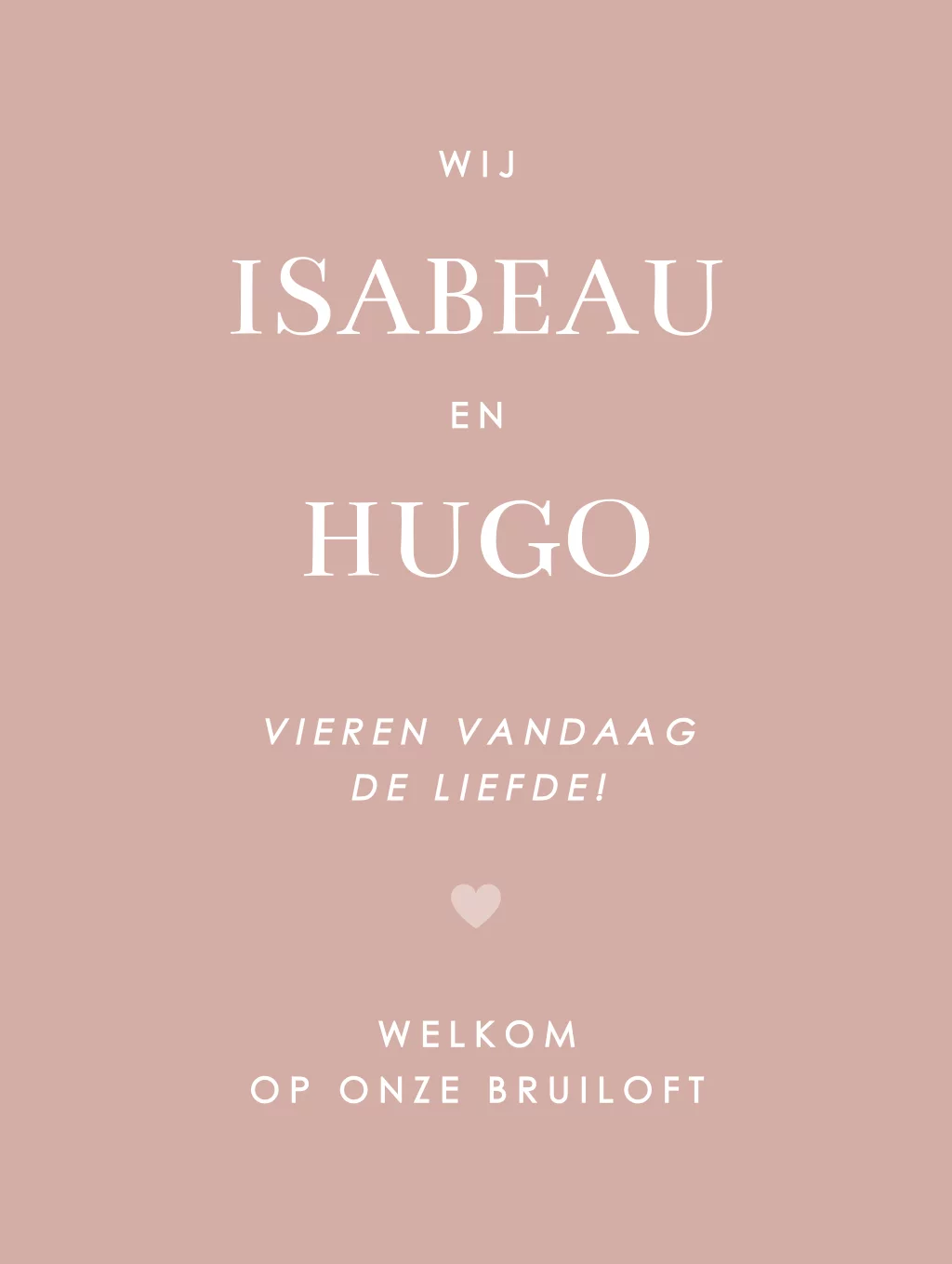 Ontwerp een mooi bord voor je bruiloft om je gasten welkom te heten! Dit is een weerbestendig welkomsbord in het formaat 73x55 cm gemaakt op het materiaal forex van 5 mm dik. Foliedruk is niet mogelijk op het bord. Bevestig het bruiloft bord op een houten paal naar keuze (of bijv. Een schildersezel). Let op: bevestigingsmateriaal wordt niet meegeleverd.