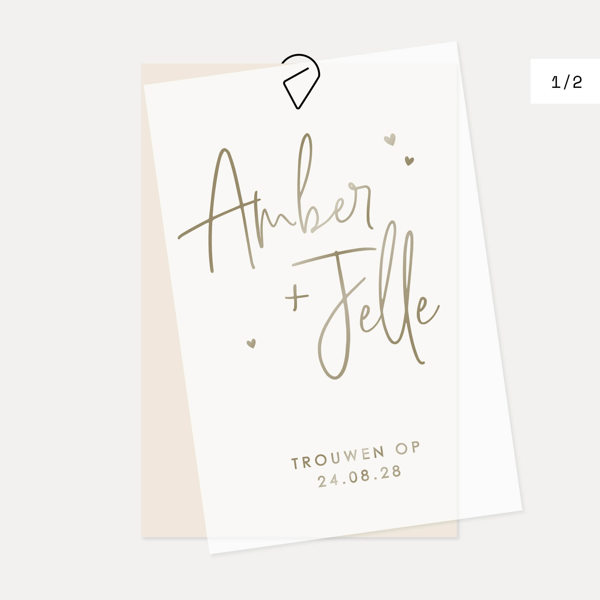 deel 1 - kalkpapier voorkant trouwkaart handgeschreven